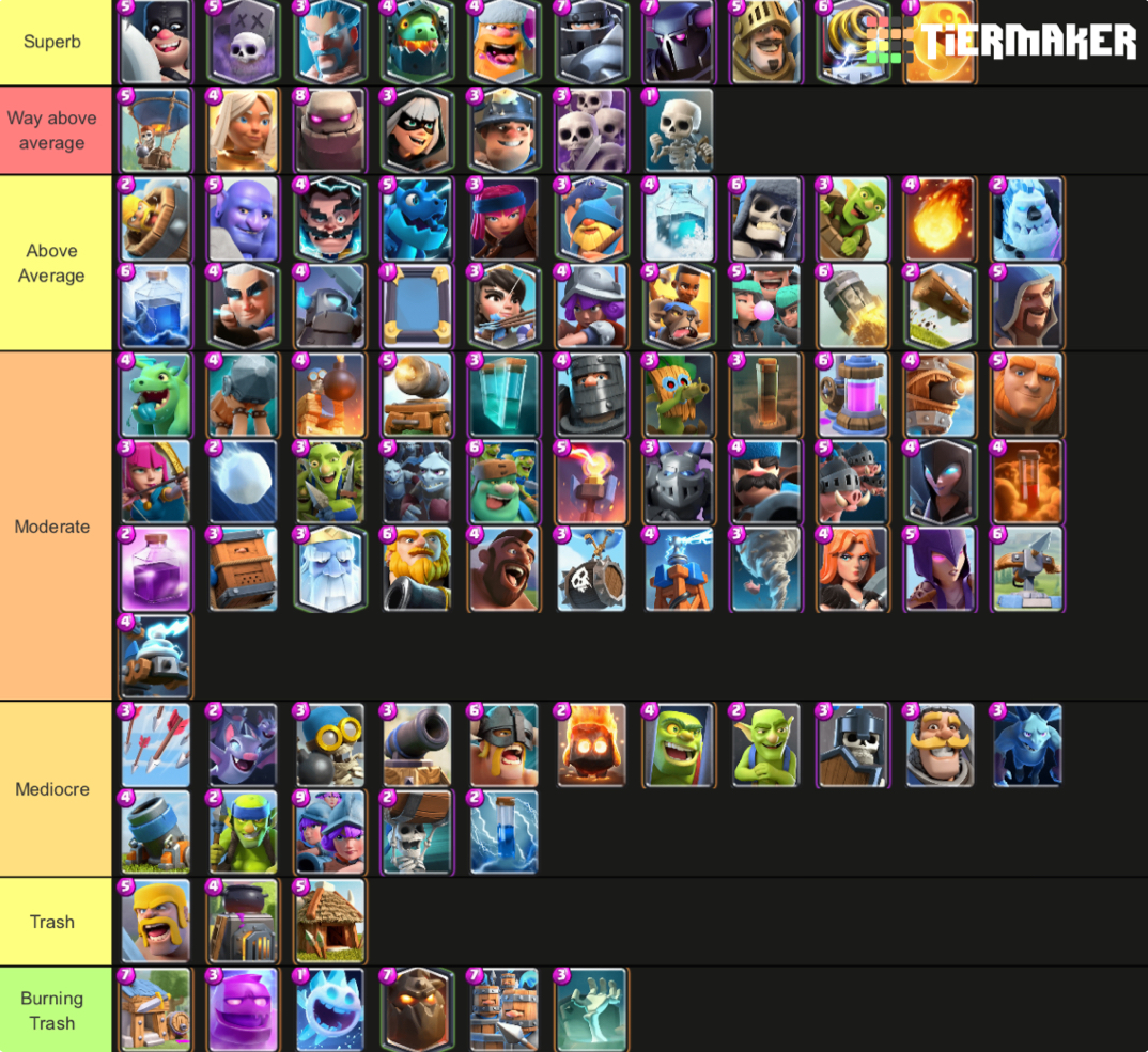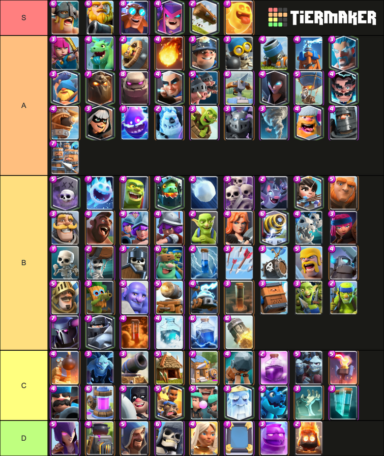 Ranking EVERY SINGLE CARD In Clash Royale Clash Royale December 2021 Tier List - SolarFurySUBSCRIBE - httpsbitly2UL8e5aWatch Next - WHy Archer Queen I. I think this tier list is fine except for skeleton army being C tier and electro giant def being s tier. Whats the best way to make a tribute to this great game than to rank all of the cards in a Clash Royale tier listThis successful mobile game has been out for a little over 5 years now and it seems it isnt going anywhere.